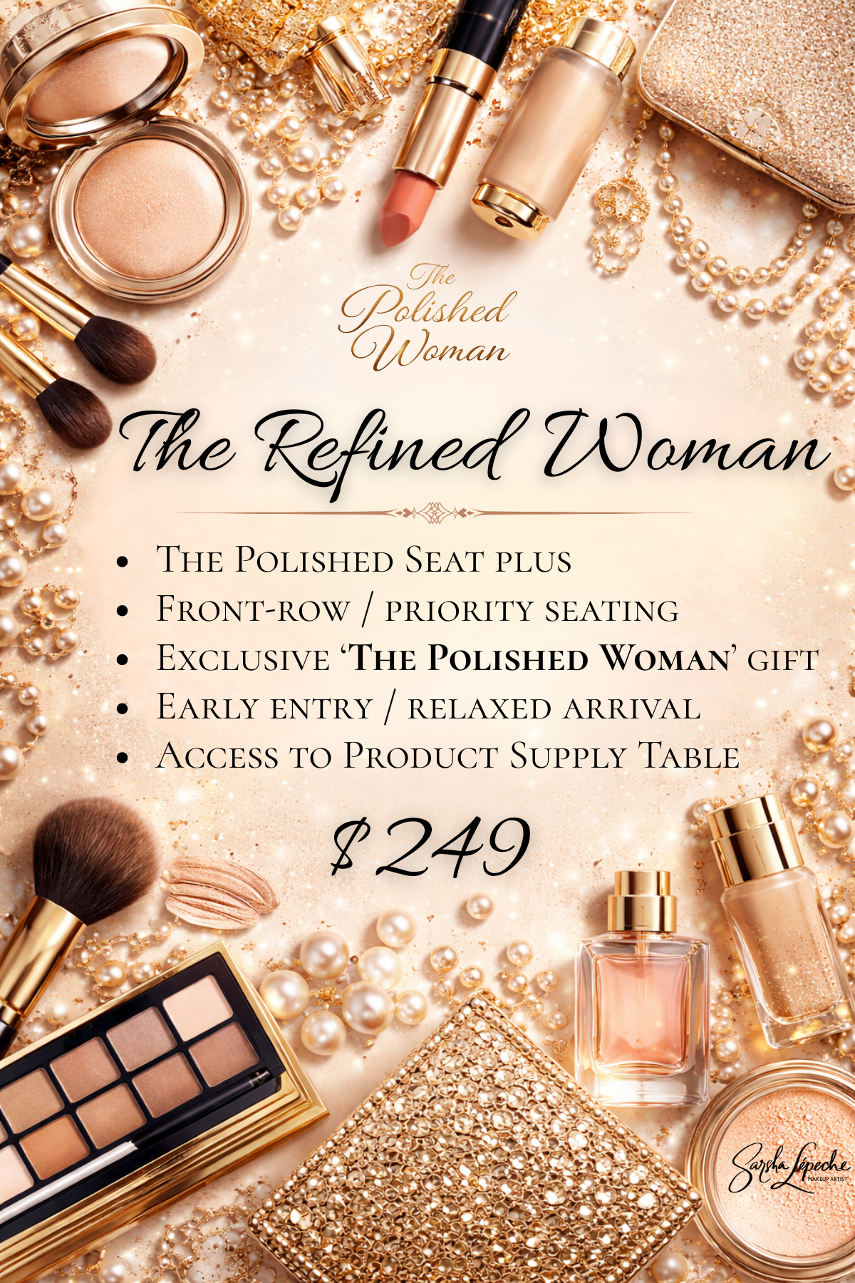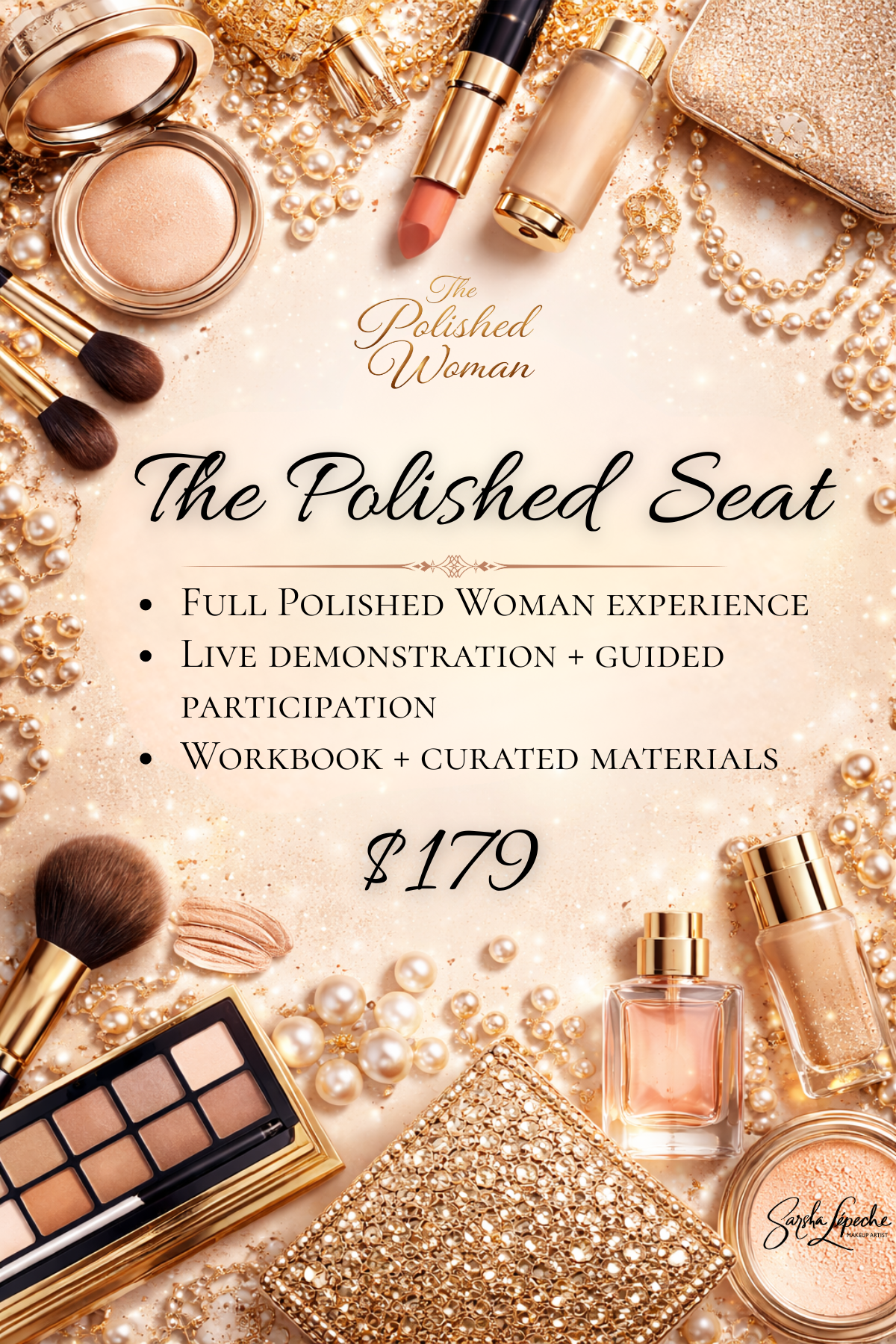 Drawing on over a decade of professional artistry and education, The Polished Woman masterclass invites women into a refined environment where beauty, presence, and preparation intersect.