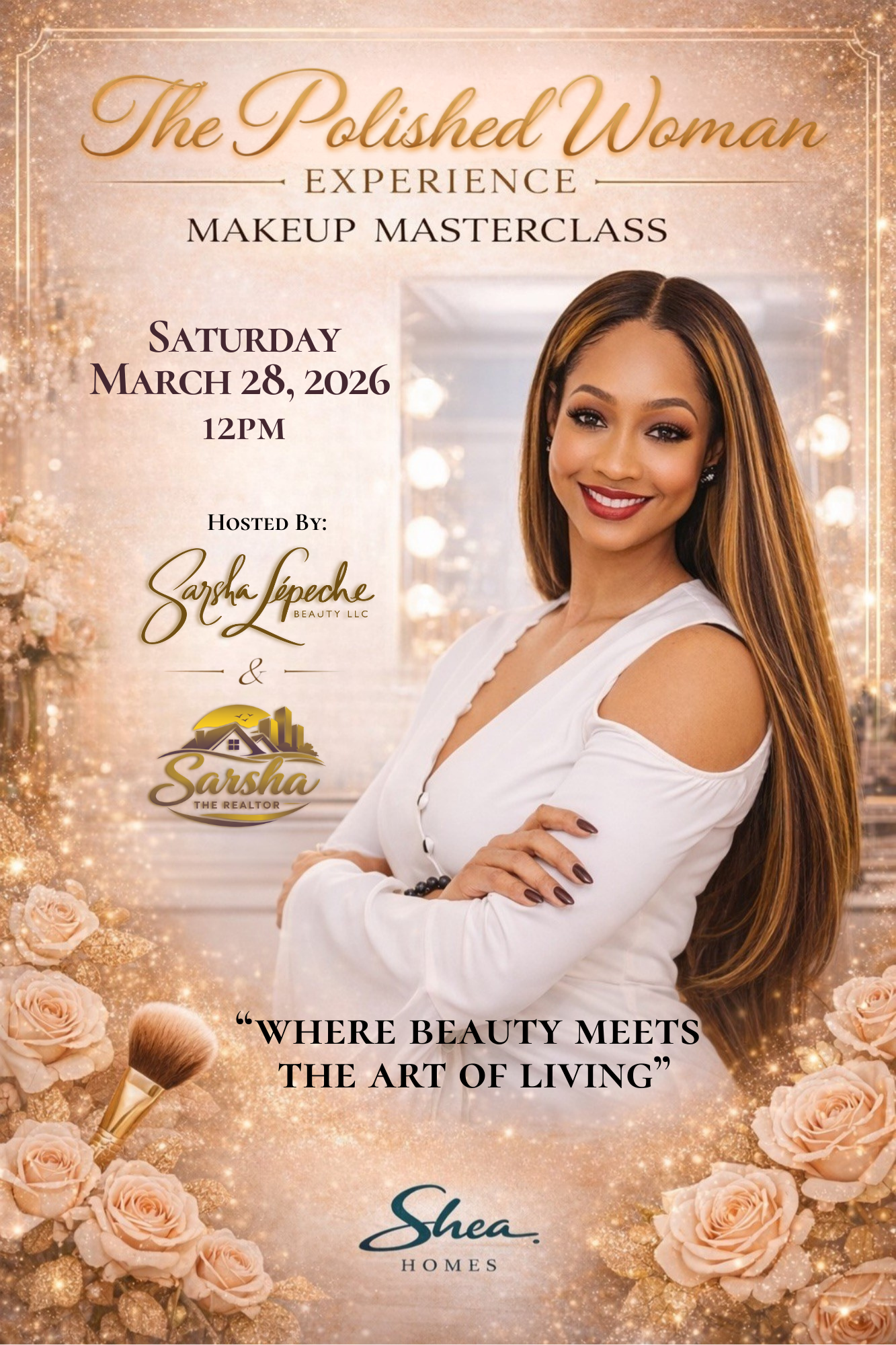 Led by Sarsha Lepeche, professional makeup artist and licensed REALTOR®, this experience bridges beauty, personal brand, and lifestyle alignment. Attendees will learn refined makeup techniques tailored for showings, networking events, headshots, and daily client interaction, all within a setting that reflects the caliber of the clientele they serve.